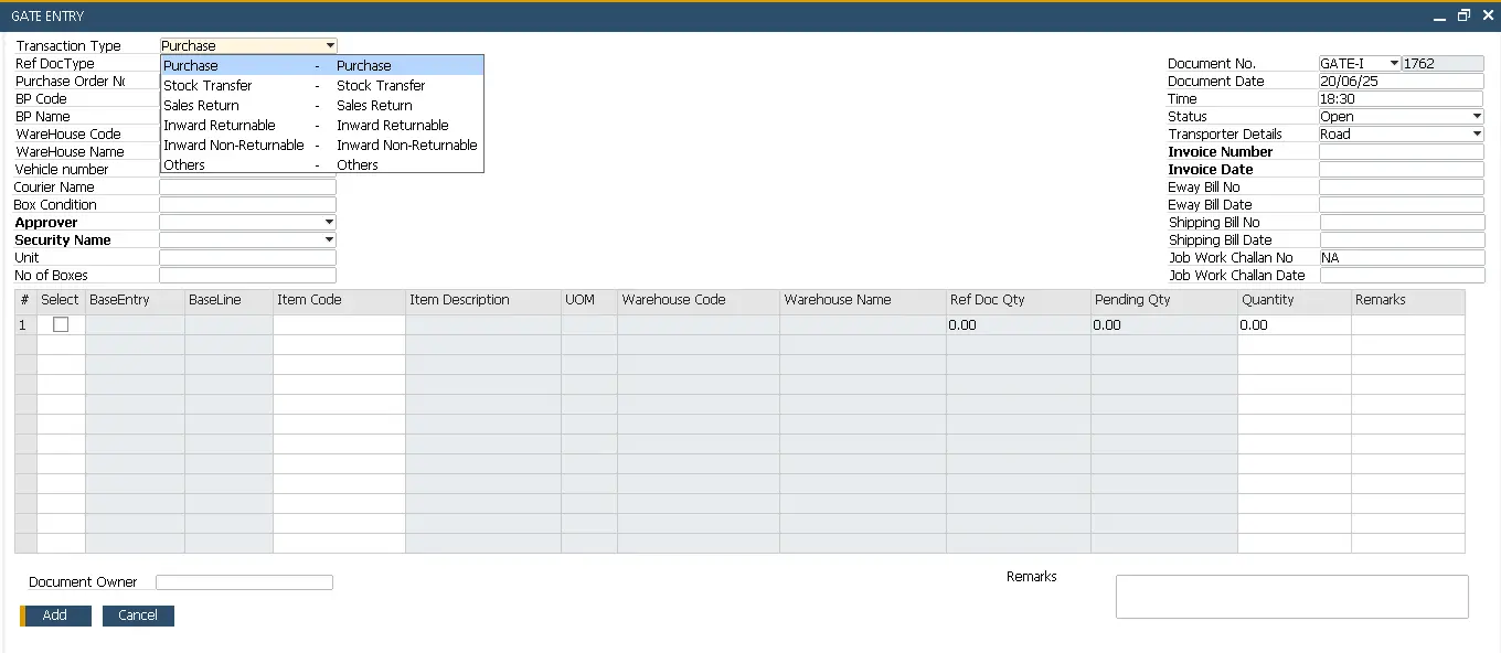 Digitize Inventory Movement at Gate with SAP Business One at core