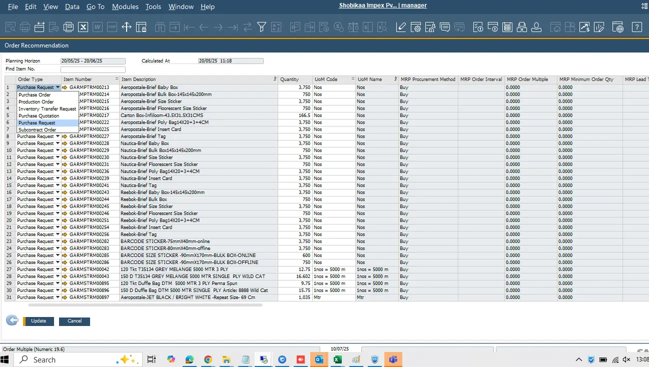 - A customized Work order/subcon order/job order gets created from the MRP Recommendation window